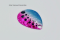 The value of flash in the presentation of spinner lures is unmatched. The multi-paint pattern with Dotted eyes on a Hammered colorada bladeadds brilliant visible reflection in all directions underwater as the blades spins.